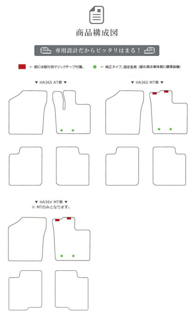 TOPSUZUKI ア行 アルト アルト フロアマット アルトワークス カーマット LXマット H26/12~ HA36S HA36V フロアマット SUZUKI ALTO 価格: ¥15,400 (税込) 販売期間: 型式: 選択してください HA36S HA36V ミッション仕様: 選択してください AT車 MT車 カラー選択: 選択してください ウェーブ ブラック ウェーブ ベージュ ウェーブ グレー ウェーブ ブラウン プレーン ブラック プレーン ベージュ プレーン グレー プレーン ブラウン プレーン レッド ヒールパッド: 選択してください マットと同系色 有り ( ブラック ) 有り ( ベージュ ) 有り ( グレー ) 有り ( ブラウン ) 有り ( ブルー ) 有り ( レッド ) 無し オーバーロックカラー: 選択してください マットと同系色 ホワイト ブラック サックス ブルー ネイビー レッド ピンク イエロー オレンジ ベージュ ダークブラウン マルーン グリーン モスグリーン シルバー ゴールド レビューを書いて特典プレゼント: 選択してください 書く:マルチクロス 書く:コースター 書かない:プレゼント不要 数量: 個 在庫: ○ 在庫 ○ 返品についての詳細はこちら 適合車種年式:2014(平成26)年12月~2021(令和3)年12月型式:HA36S HA36V※ HA36VはMT車のみとなります。部位フロア商品構成専用フロアマット4枚フロント 2枚リアシート 2枚 LX シリーズフロアマット品質表示目付(g/m2)1100素材(表)PP(ポリプロピレン)素材(裏)フェルトPPの特徴は比重が軽く、保温性・速乾性に優れた高強度繊維です。ご購入前にお読みください。●送料について日本全国津々浦々全て無料にてお送りします。