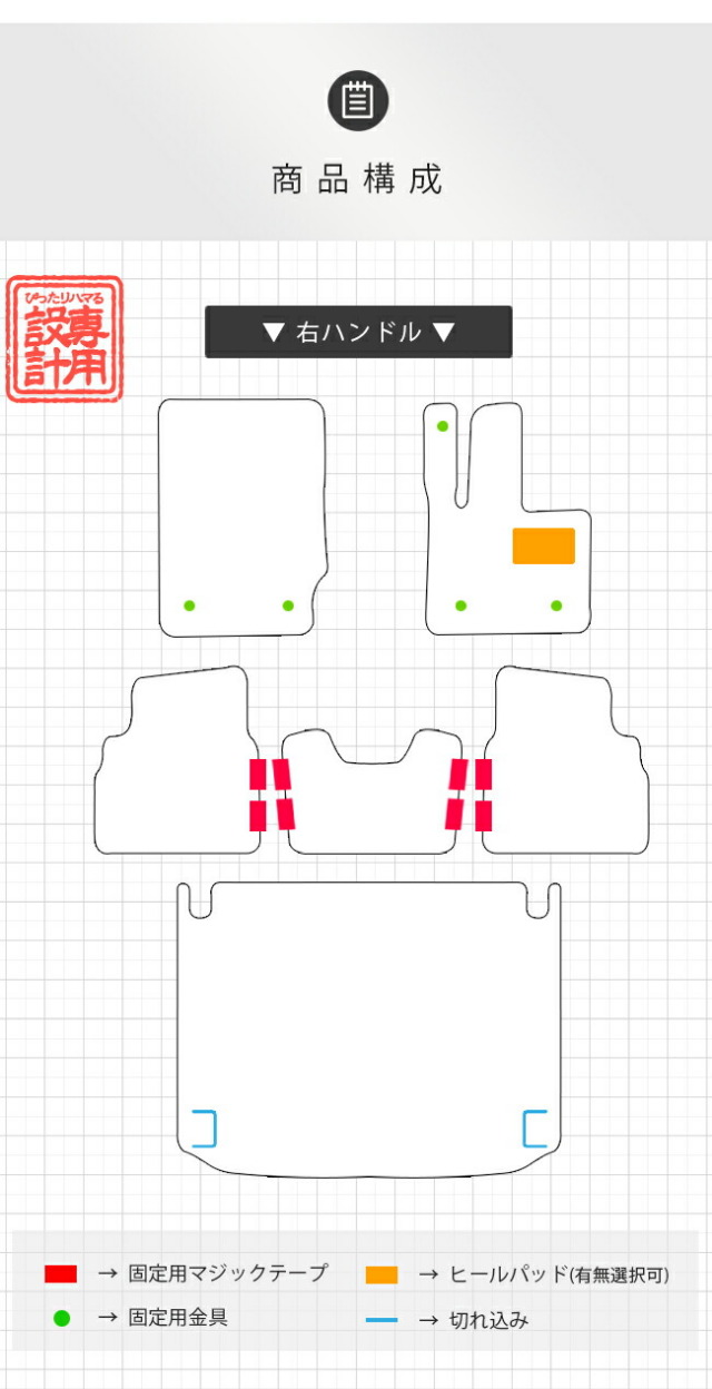 商品構成 専用フロアマット 6枚