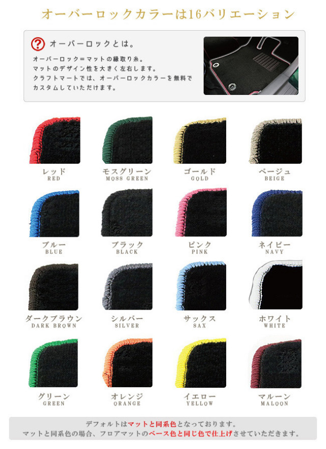 TOPカーマット全シリーズご紹介 PMシリーズ レクサス 後期 RX270 RX350 RX450h 前期 RX350 RX450h フロアマット セット PMマット L10.15.16 フロアラゲッジマット 価格: ¥39,600 (税込) 販売期間: 年式(初年度登録): 選択してください 後期 平成24年4月~平成27年9月 前期 平成21年1月~平成24年3月 カラーバリエーション: 選択してください ラインブラック ラインベージュ ファーブラック ヒールパッド: 選択してください マットと同系色 有り ( ブラック ) 有り ( ベージュ ) 有り ( グレー ) 有り ( ブラウン ) 有り ( ブルー ) 有り ( レッド ) 無し オーバーロックカラー: 選択してください マットと同系色 ホワイト ブラック サックス ブルー ネイビー レッド ピンク イエロー オレンジ ベージュ ダークブラウン マルーン グリーン モスグリーン シルバー ゴールド レビューを書いて特典プレゼント: 選択してください 書く:マルチクロス 書く:コースター 書かない:プレゼント不要 数量: 個 在庫: ○ 在庫 ○ 返品についての詳細はこちら 適合車種・後期 RX270/350/450h・前期 RX350/450h・年式: 後期 平成24年4月~平成27年10月・年式: 前期 平成21年1月~平成24年3月・形式: L10.15.16部位・フロア・ラゲッジルーム商品構成・フロアマット3枚・ラゲッジマット1枚 PM シリーズフロアマット品質表示目付(g/m2)1500素材(表)PE(ポリエステル)素材(裏)フェルトPEの特徴は比重が軽く、保温性・速乾性に加え高弾性に優れた高強度繊維です。 適合車種 ・後期 RX270/350/450h・前期 RX350/450h・年式: 後期 平成24年4月~平成27年10月・年式: 前期 平成21年1月~平成24年3月・形式: L10.15.16 部位 ・フロア・ラゲッジルーム 商品構成 ・フロアマット3枚・ラゲッジマット1枚 ご購入前にお読みください。●送料について日本全国津々浦々全て無料にてお送りします。