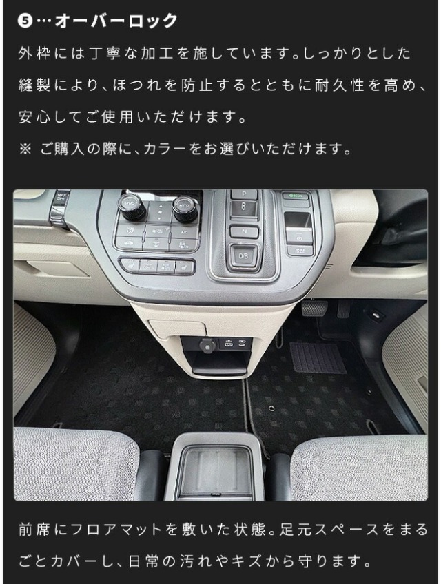| 商品説明 | ホンダ ステップワゴン RP6/RP7/RP8 系に専用設計されたフロアマットです。 7人乗り仕様のガソリン車およびハイブリッド車に対応し、フロアスペースを美しくカバーします。 日常の汚れ・水濡れ・砂や泥から車内を守るため、裏面には滑り止め加工を施し、走行時のズレを抑制します。形状に沿ったカットと精密な設計で、装着時も違和感のないフィット感を実現しています。 取り付けは簡単で、専用止め具が付属しており、工具不要で手軽に設置可能です。また、汚れても水洗いや拭き取りでお手入れできるため、長く清潔にご使用いただけます。 当商品は、ステップワゴン RP6/7/8 の 7人乗り(ガソリン/ハイブリッド車両)の専用設計しております。他仕様車や他車種には適合しませんので、ご購入前にお車の型式・仕様をご確認ください。 |