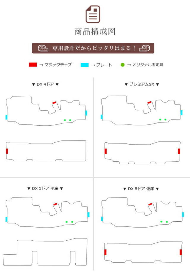 TOPカーマット全シリーズご紹介 DXシリーズ 日産 NV350 キャラバン バン 標準車 フロアマット DXシリーズ 専用 車用アクセサリー カーマット 内装 カスタム 車用品 内装パーツ NISSAN CARAVAN 価格: ¥11,880 (税込) 販売期間: グレード: 選択してください DX4ドア プレミアムGX DX5ドア平床 DX5ドア低床 カラー選択: 選択してください スクエア ブラック スクエア ベージュ スクエア グレー プレーン ブラック プレーン ベージュ プレーン グレー ラバー ブラック レッド×ブラック ブルー×ブラック シルバー×ブラック ダークグレー×ブラック ベージュ×ブラウン ゴールド×ブラック ヒールパッド (ラバータイプには取付不可): 選択してください マットと同系色 有り ( ブラック ) 有り ( ベージュ ) 有り ( グレー ) 有り ( ブラウン ) 有り ( ブルー ) 有り ( レッド ) 無し オーバーロックカラー: 選択してください マットと同系色 ホワイト ブラック サックス ブルー ネイビー レッド ピンク イエロー オレンジ ベージュ ダークブラウン マルーン グリーン モスグリーン シルバー ゴールド レビューを書いて特典プレゼント: 選択してください 書く:マルチクロス 書く:コースター 書かない:プレゼント不要 数量: 個 在庫: ○ 在庫 ○ 返品についての詳細はこちら 適合車種NISSAN NV350 CARAVAN 日産 キャラバン 標準車 バン年式(ガソリン):2012(平成24)年6月~2021(令和3)9月年式(ディーゼル):2012(平成24)年7月~2022(令和4)4月型式E26 ※全グレード対応しています。部位フロア(フロント・リア)商品構成専用フロアマット 2枚(フロント 1枚 リア 1枚)固定具・オリジナル固定具 DX シリーズフロアマット品質表示目付(g/m2)700素材(表)PP(ポリプロピレン)素材(裏)スパイクゴムPPの特徴は比重が軽く、保温性・速乾性に優れた高強度繊維です。 適合車種 NISSAN NV350 CARAVAN 日産 キャラバン 標準車 バン年式:2012(平成24)年6月~現行モデル 型式 E26 ※全グレード対応しています。 部位 フロア(フロント・リア) 商品構成 専用フロアマット 2枚(フロント 1枚 リア 1枚) 固定具 ・オリジナル固定具 ご購入前にお読みください。●送料について日本全国津々浦々全て無料にてお送りします。