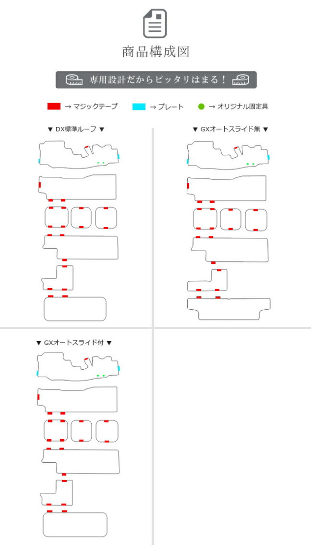 商品構成 専用フロアマット 8枚(フロント 1枚 セカンドシート 1枚 サードシート以下 6枚)