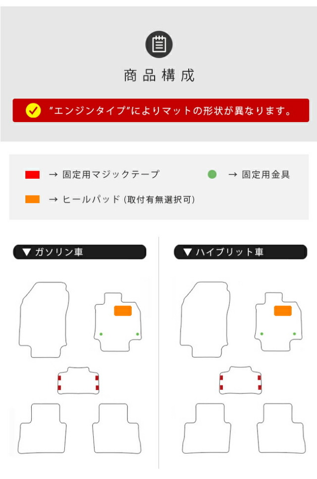 | 商品構成 | 運転席1枚 助手席1枚 後部座席用3枚 ※ メンテナンス書を同封しております。 |