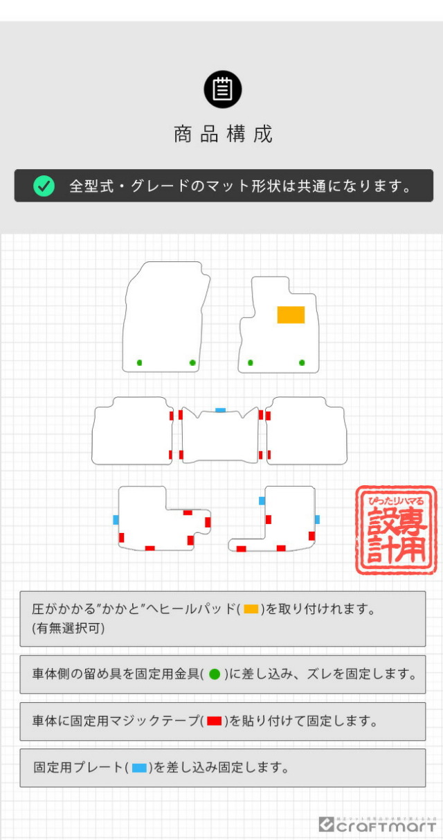 Craft Mart(クラフトマート)では、ノア,ヴォクシー,アルファード,ヴェルファイア,シエンタ,プリウス,アクア,セレナ,CX-5,デミオ,CX-3等、車種別専用設計の高品質フロアマット・ラグマットを製造工場直販価格で。