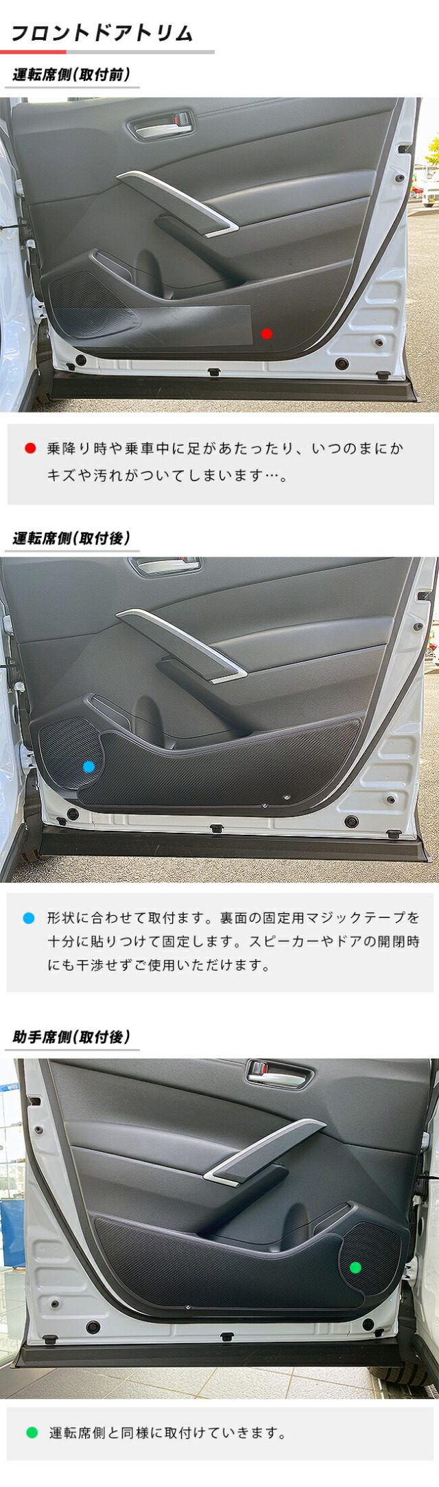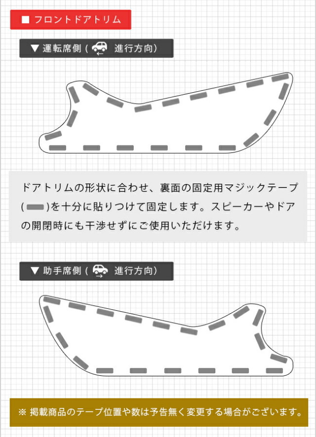 | 商品構成 | グローブボックス用 1枚 運転席ドアトリム用 1枚 助手席ドアトリム用 1枚 |