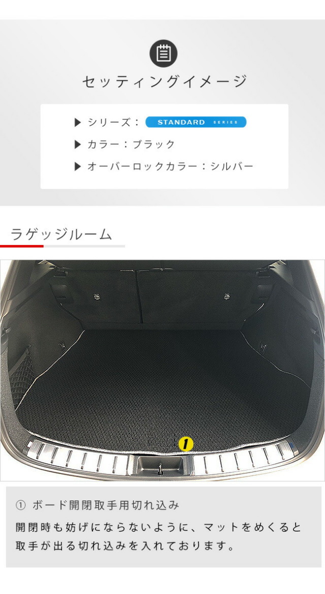 | 商品構成 | 専用フロアマットセット 6枚 運転席 1枚 助手席 1枚 後部座席 3枚 荷室 1枚 |