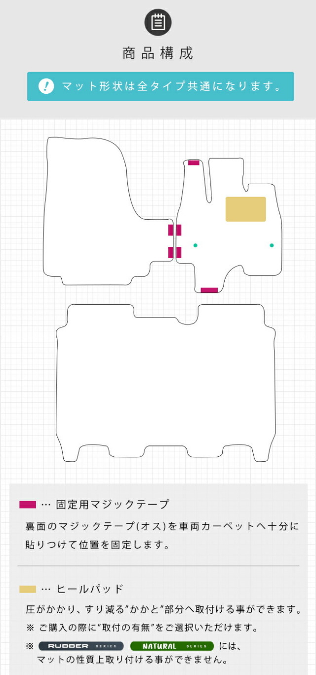 | 適合型式 | JF5 / JF6 ※ マット形状は全タイプ共通になります。 |