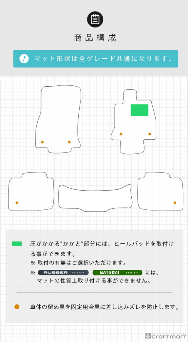 | 適合型式 | AZSH32 KZSM30 ※ マット形状は全グレード共通になります。 |
