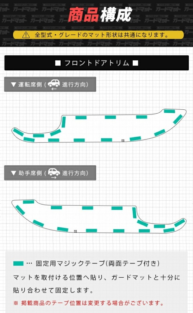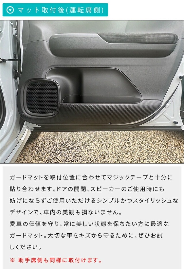 TOPHONDA ア行 N-WGN ガードマット ホンダ N-WGN jh3 jh4 ガードマット キックガード フロントドアトリム リアドアトリム用 4枚組 アクセサリー 内装 カスタム パーツ ドレスアップ エヌワゴン 専用 アクセサリー キズ防止マット 価格: ¥8,800 (税込) 販売期間: カラー: 選択してください カーボン レザーブラック レザーレッド レザーグレー レザーブラウン レザーキャメル レビューを書いて特典プレゼント: 選択してください 書く:マルチクロス 書く:コースター 書かない:プレゼント不要 数量: 個 在庫: ○ 在庫 ○ 返品についての詳細はこちら 適合車種ホンダ N-WGN適合年式2019(令和1)年8月〜※ 適合年式以外のご使用はお控えください。適合型式JH3JH4※ 適合型式以外のご使用はお控えください。商品構成フロントドアトリム用ガードマット 2枚リアドアトリム用ガードマット 2枚確認事項・納期につきましては弊社からのメールをご確認くださいませ。・ガードマット未装着の車体形状を必ずご確認くださいませ。 適合車種ホンダ N-WGN 適合年式2019(令和1)年8月~※ 適合年式以外のご使用はお控えください。 適合型式JH3JH4※ 適合型式以外のご使用はお控えください。 商品構成フロントドアトリム用ガードマット 2枚リアドアトリム用ガードマット 2枚 確認事項・納期につきましては弊社からのメールをご確認くださいませ。・ガードマット未装着の車体形状を必ずご確認くださいませ。