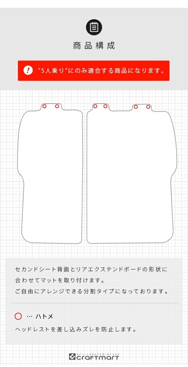 | 商品構成 | 専用フロアマット(セカンドシート背面用) 2枚 |