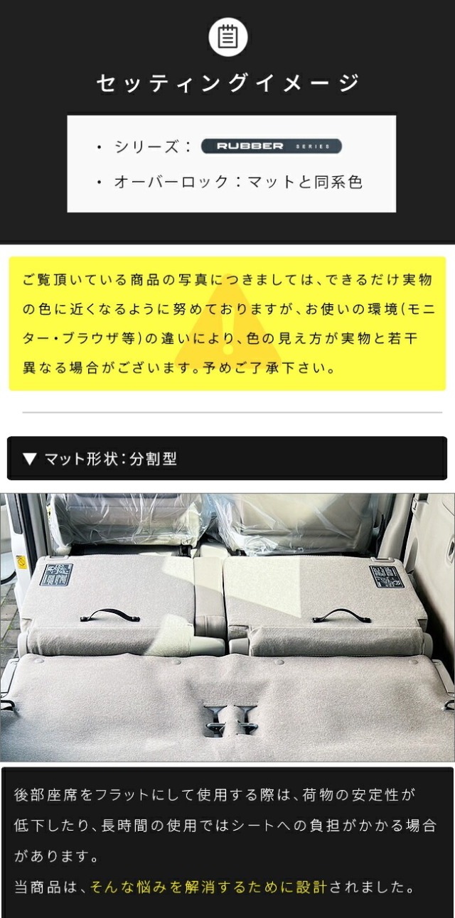 | 商品構成 | 専用ラゲッジマット(後部座席背面) 1~2枚 ※ 本製品は、マット形状が2種類ございます。ご購入の際は、ご希望の形状をお選びのうえお求めください。(ご注文確定後のキャンセル・返品はお受けできません。) |