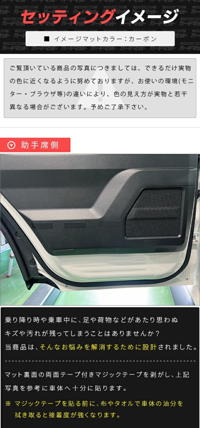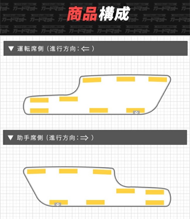 | 商品構成 | 専用リアドアトリム用ガードマット 2枚 |