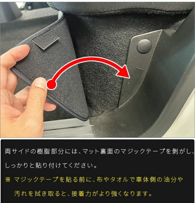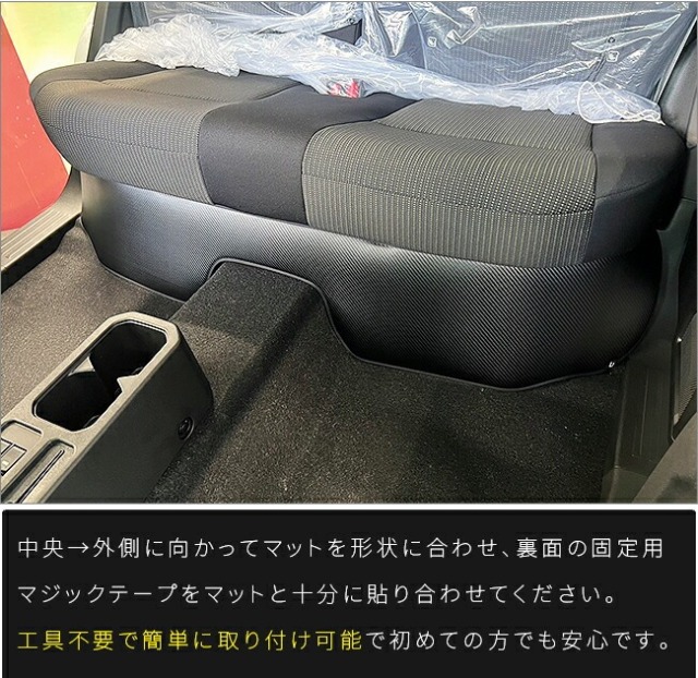 | 商品説明 | スズキ ジムニー ノマド専用の後部座席下ガードマットです。 シート下は足先が当たりやすいほか、荷物の出し入れやシート操作時に擦れキズや汚れが発生しやすく、車内の見た目が大きく損なわれてしまいます。 本製品は、専用設計でシート下の形状にしっかりフィットし、キズ・汚れ・擦れから保護します。耐久性のある素材を採用しているため、日常使用での劣化を抑え、長期間きれいな状態を維持できます。 取付は、裏面のマジックテープで貼り付けるだけの簡単仕様。取り外しや清掃もスムーズに行えます。ジムニー ノマドの内装を美しく保ちたい方、後席まわりの保護を強化したい方に最適なアイテムです。 |